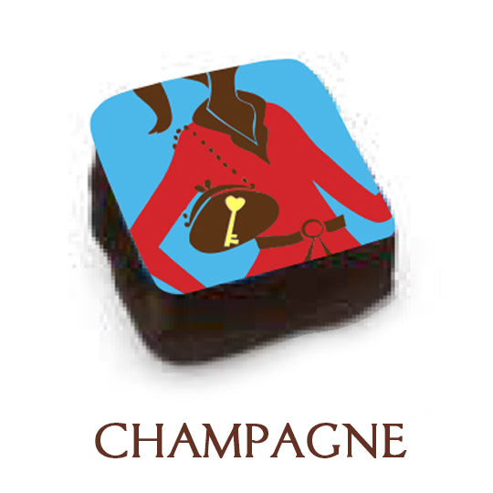 Champagne: Cocoa Butter, Milk Powder, Unsweetened Chocolate, Emulsifier Soy Lecithin, Natural Vanilla Flavor, Salt, Skimmed Milk Powder, Emulsifier Sunflower Lecithin, Vanilla, Sugar, Natural Vanilla Extract, Heavy Whipping Cream, Grapes, Champagne, Natural Vanilla Extract, Cocoa Butter Oil, Corn Syrup Solids.