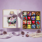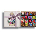 Housed in a signature 16-piece square box, this collection serves as a sophisticated canvas for our seasonal artwork, framed by a resplendent powder-white hue and finished with a luxurious gold border. This elegant presentation is more than a gift; it is a treasure trove designed to woo the heart and ignite the senses. Inside, you will discover a curated gallery of artisanal ganaches, each meticulously hand-painted with playful designs that weave intricate tales of romance, from whimsical silhouettes to the literal expression of "Love".