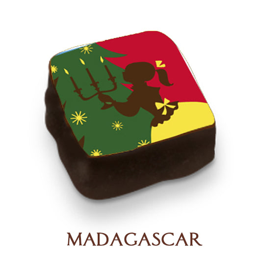 Madagascar: Heavy Cream, Cocoa Beans, Sugar, Cocoa Butter, Emulsifier Soy Lecithin, Natural Vanilla Extract, Pure Cocoa Paste, Whole Milk Powder, Unsweetened Chocolate, Natural Vanilla Flavor, Salt, Butter, Corn Syrup, Vodka. Colors: (E171, E110, E102, E129, E132).